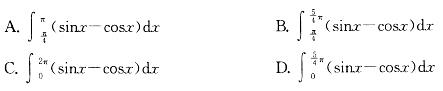 在区间[0,2π]上,曲线:y=sinx与y=cosx之间所围图形的面积是: