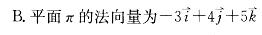 设平面π的方程为3x-4y-5z-2=0,以下选项中错误的是: