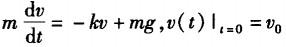 将质量为m的物体在空气中竖直上抛,初速度为vo,若空气阻力与物体的速度V(t)(t是时间)成正比,比例系数为k,g为重力加速度.V(t)所满足的微分方程及初始条 件是( ).