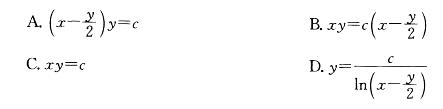 微分方程ydx+(x-y)dy=0的通解是:(c为任意常数)![]()