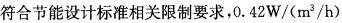某商场空调系统采用两管制定风量系统,粗效和中效过滤,采用湿膜加湿,风机全压为1100Pa,风机全压效率为72%,电动机效率为80%,电动机直联,则该风机单位风量耗功率满足节能设计标准的判断以及风机单位风量耗功率数值最接近的应是( )。