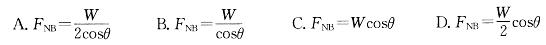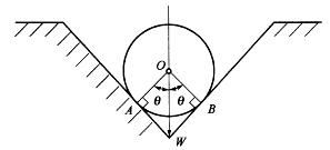 重W的圆球置于光滑的斜槽内(如图所示)。右侧斜面对球的约束力FNB的大小为:![]()