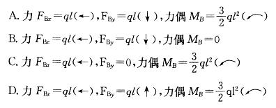 结构的载荷与尺寸均已知。B处约束的全部约束力为:![]()