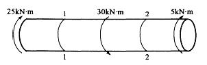 如图所示,直杆受扭转力偶作用,在截面1-1和2-2处的扭矩为: