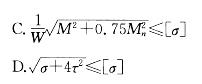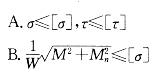图示为正方形截面等直杆,抗弯截面模量为W,在危险截面上,弯矩为M,扭矩为Mn,A点处有最大正应力σ和最大剪应力γ。若材料为低碳钢,则其强度条件为:![]()