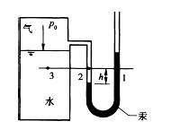 如图,上部为气体下部为水的封闭容器装有U形水银测压计,其中1、2、3点位于同一平面上,其压强的关系为: A.p123