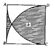 如下图所示,正方形ABCD的边长为5cm,A C、BD分别是以点D和点C为圆心、 5cm为半径作的圆弧。问阴影部分a的面积比阴影部分b小多少?(π取3. 14)( ) A. 13.75cm2