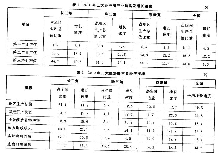 2010年,京津冀经济圈的哪一经济指标值居三大经济圈之首?( )