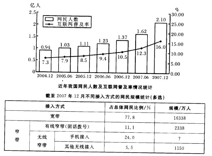 D我国网民中使用宽带上网的人数是使用窄带上网人数的近两倍
