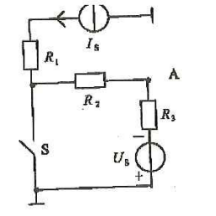 已知Is=2 A,Us=-12V, R1=R2=4image.png=R3=4image.png, 求开关S闭合前后的UA分别为( )。