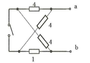 图示电路中a、b端的等效电阻Rab在开关K打开与闭合时分别为( )。