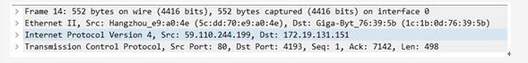 下图是使用wireshark抓取一个TCP数据报文段的截图(注意wireshark中的数据不包含FCS的4个字节)