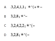 表达式3*2^(4+2*2-6*3)-5求值过程中当扫描到6时,对象栈和算符栈为(),其中^为乘幂。![]()