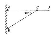 图示桁架,在结点C处沿水平方向受P力作用。各杆的抗拉刚度相等。若结点C的铅垂位移以Vc表示,BC杆的轴力以NBC表示,则: A. NBC=0,Vc=0