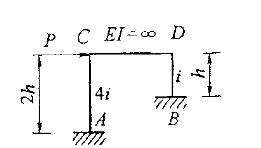 图示结构(二立柱的线刚度分别为4i,i),其弯矩大小为: