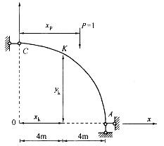 图示圆弧曲梁MK(内侧受拉为正)影响线在C点的竖标为: