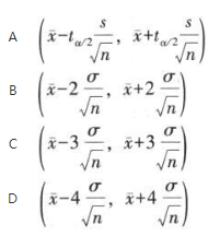 小样本情况下,总体服从正态分布,总体方差未知,总体均值在置信水平(1-a)下的置信区间为( )。