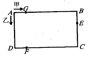 如右图,两只小爬虫甲和乙从A点出发,沿长方形ABCD的边,按箭头方向爬行,在离C点32厘米的E点它们第一次相遇;在离D点16厘米的F点第二次相遇;在离A点16厘米的G点第三次相遇。求长方形的边AD长多少厘米? AB边长多少厘米?( )
