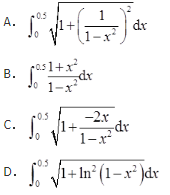曲线y=ln(1-x^2)上0≤x≤0.5一段的弧长等于( )。![]()