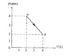如图所示,一定量的理想气体,沿着图中直线从状态a(压强p1=4atm,体积V1=2L)变到状态b(压强p2=2atm,体积V1=4L),则在此过程中气体做功情况,下列哪个叙述正确?