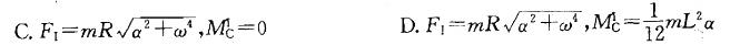 图示均质杆AB的质量为m,长度为L,且O1A = O2B=R,O1O2=AB=L。当φ=60°时,O1A杆绕O1轴转动的角速度为ω,角加速度为α,此时均质杆AB的惯性力系向其质心C简化的主矢FI和主矩MIC的大小分别为: