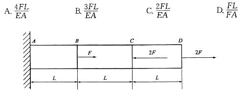 图示等截面直杆,材料的拉压刚度度为EA,杆中距离A端1. 5L处横截面的轴向位移是:![]()