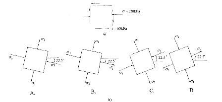 已知某点的应力状态如图a)所示,则该点的主应力方位应为图b)中哪一个图所示?