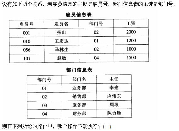 A从雇员信息表中删除行(‘010’,‘王宏达’,‘01’,1200)