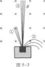放射性元素放射的射线在磁场中分成三束,如图5-3所示.射线①向左偏转,射线②向右偏转,射线③不偏转.由此可以确定( )