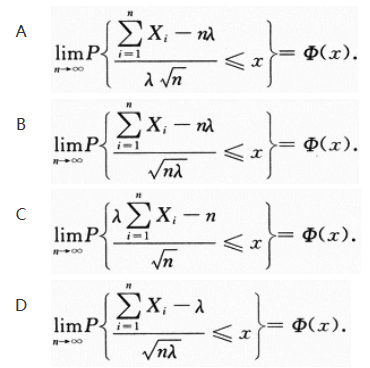 设X1,X2,…,Xn,…为独立同分布的随机变量列,且均服从参数为λ(λ>1)的指数分布,记φ(x)为标准正态分布函数,则![]()